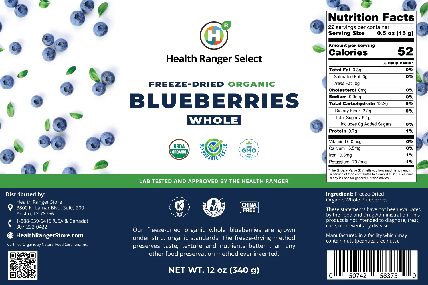 | Ingredients: Freeze- Dried Organic Whole Blueberries |