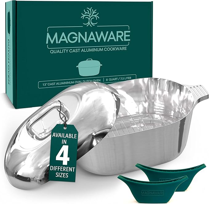 - Lightweight & Rustproof - Why struggle with heavy cookware? Our cast aluminum Dutch oven oval pot is a breeze to handle, weighing just a fraction of cast iron. Plus, it's super easy to maintain – no need for seasoning, and it won't rust!